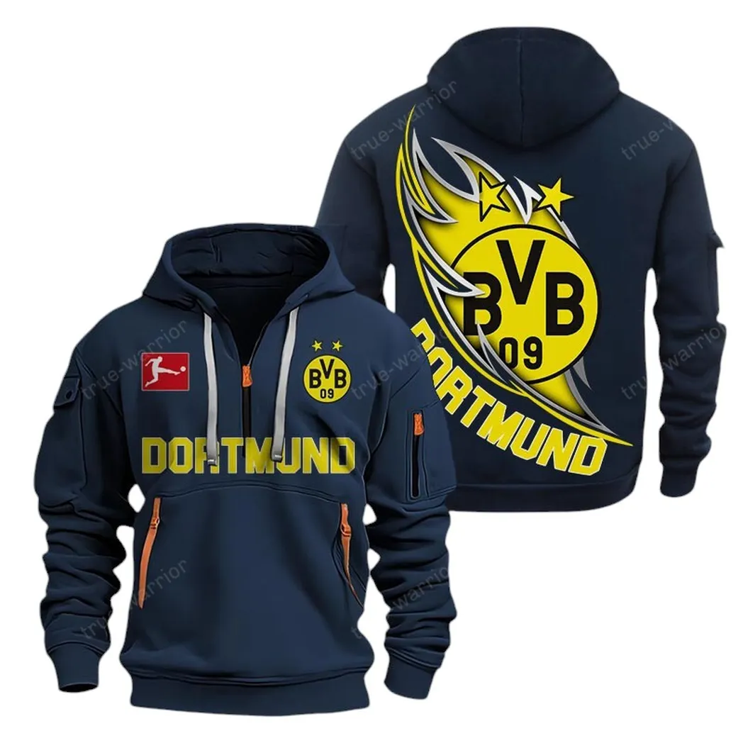 Gelber Fan-Fußball Kapuzenpullover mit halbem Reißverschluss, Hoodie Für Fußballfans BDE300 – Marineblau